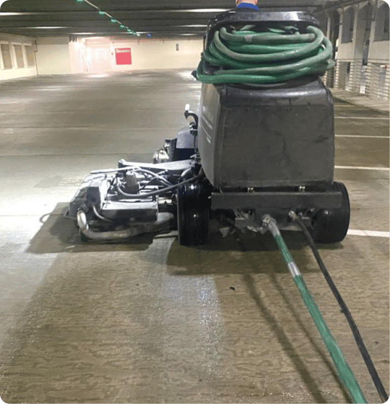 Our 3-Step Parking Garage Power Washing process, pre-treatment, deep cleaning, and final rinse, removes buildup and restores a cleaner, safer surface so your garage stays presentable longer.
