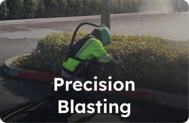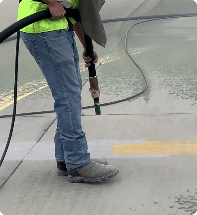 Sandblasting (Abrasive Blasting) is the most effective method for total line removal and surface profiling. We use high-velocity media to scour away stubborn markings without compromising the structural integrity of your asphalt or concrete.