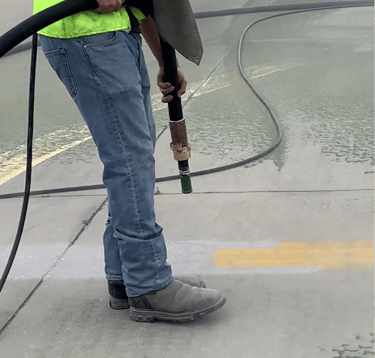 Neglecting to blast away this surface film means your high-dollar restriping project will wash away during the first North Texas storm or high-pressure power wash.